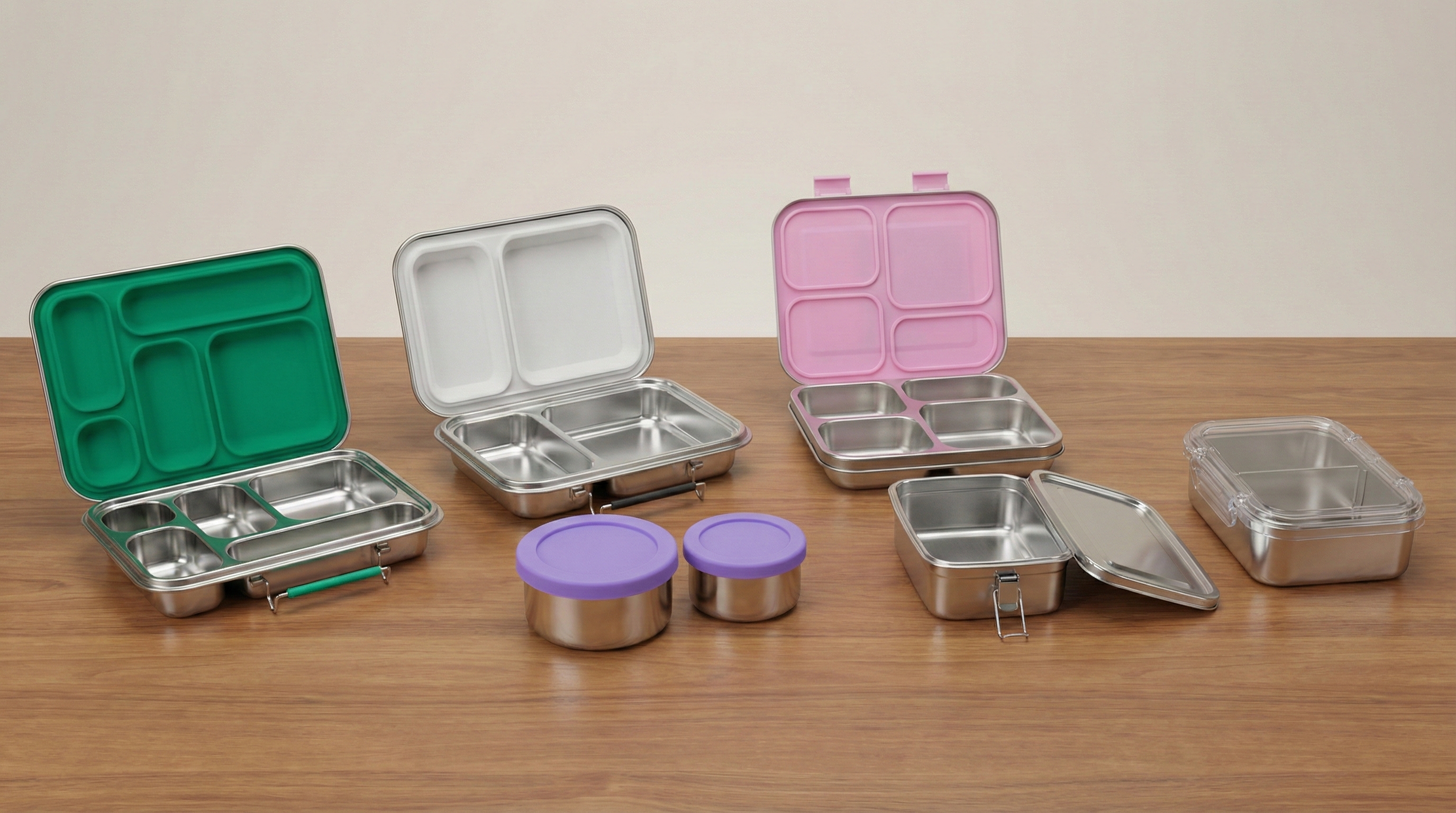 Five compartments for families who want variety. Pack a complete meal in one container: protein, carbs, vegetables, fruit, and a treat. Made with a 304 stainless steel body and a removable BPA-free silicone seal. No more soggy crackers. No more sauce disasters.