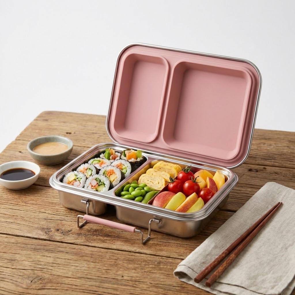 Five compartments keep every part of the meal separated, sealed, and plastic-free.